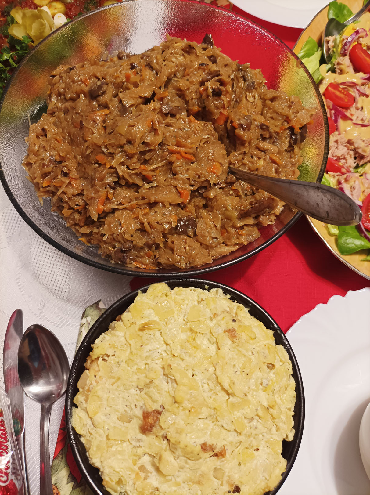 Wigilia jest zawsze u Halinki, to tradycja. Tego dnia gościnny, udekorowany i ciepły dom Halinki pachnie wyjątkowo świątecznie. Specjalność Pani domu, to zupa grzybowa, barszczyk czerwony z pasztecikami drożdżowymi, pierogi z kapustą i grzybami. Na dzisiejszą kolację, każda z nas przyniosła to, co potrafi najlepiej. Stół uginał się od wyjątkowo smacznych, pięknie podanych dań wigilijnych. Robiłyśmy to ze szczerego serca i z całym znawstwem kulinarnym. Gotowałyśmy to dla naszej wspólnej rodziny, to my jesteśmy dla siebie właśnie RODZINĄ, rodziną z wyboru na dobre i na złe. Złe i do nas czasami przypełźnie, trudno, ot życie, ale na dobro, to już wspólnie pracujemy. Efekty też są! Wszystkie członkinie naszego grona są wspaniałe a czas spędzony w ich gronie to czysta przyjemność.